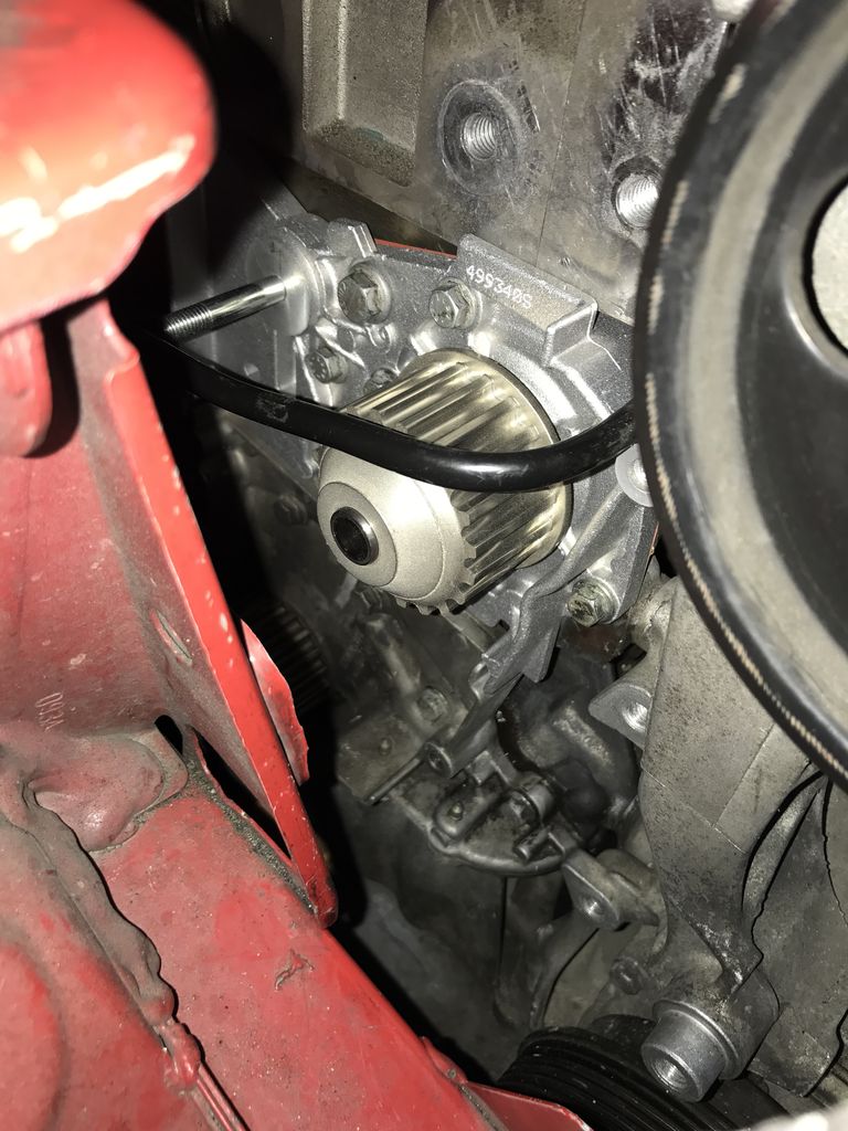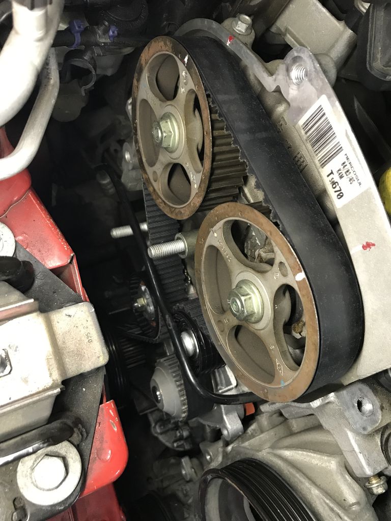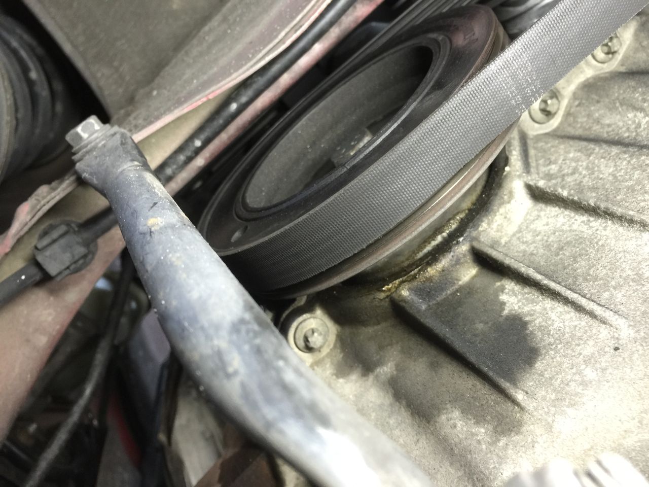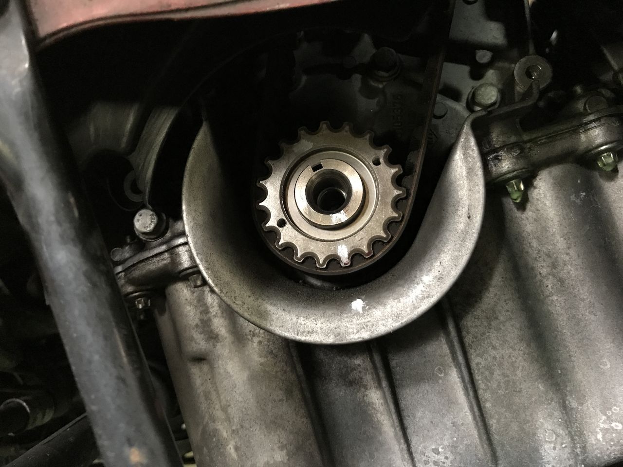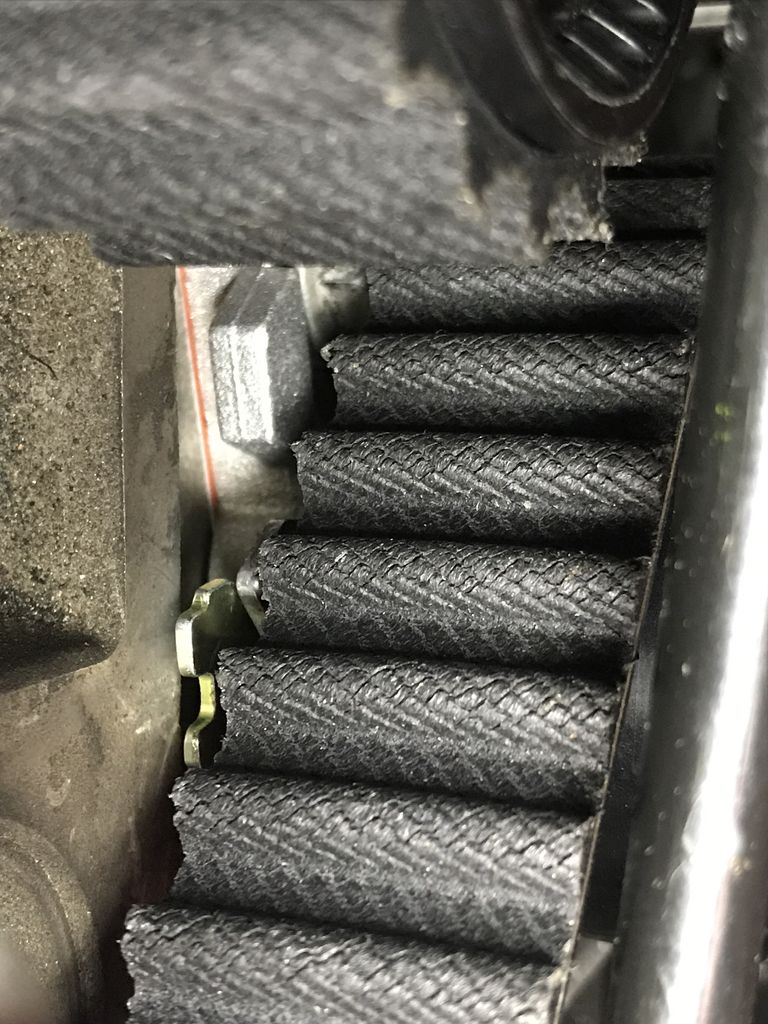 と言うわけで、無事にタイベルカバーも付いたのでファンベルトを装着〜ですが、そもそもこうなってしまった原因は、、、