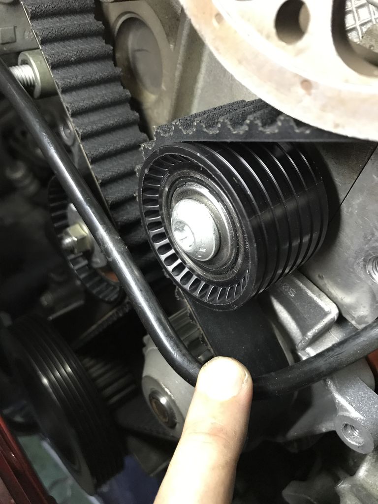 そしてやっとベルトの交換。もちろん高価なテンショナーも交換。