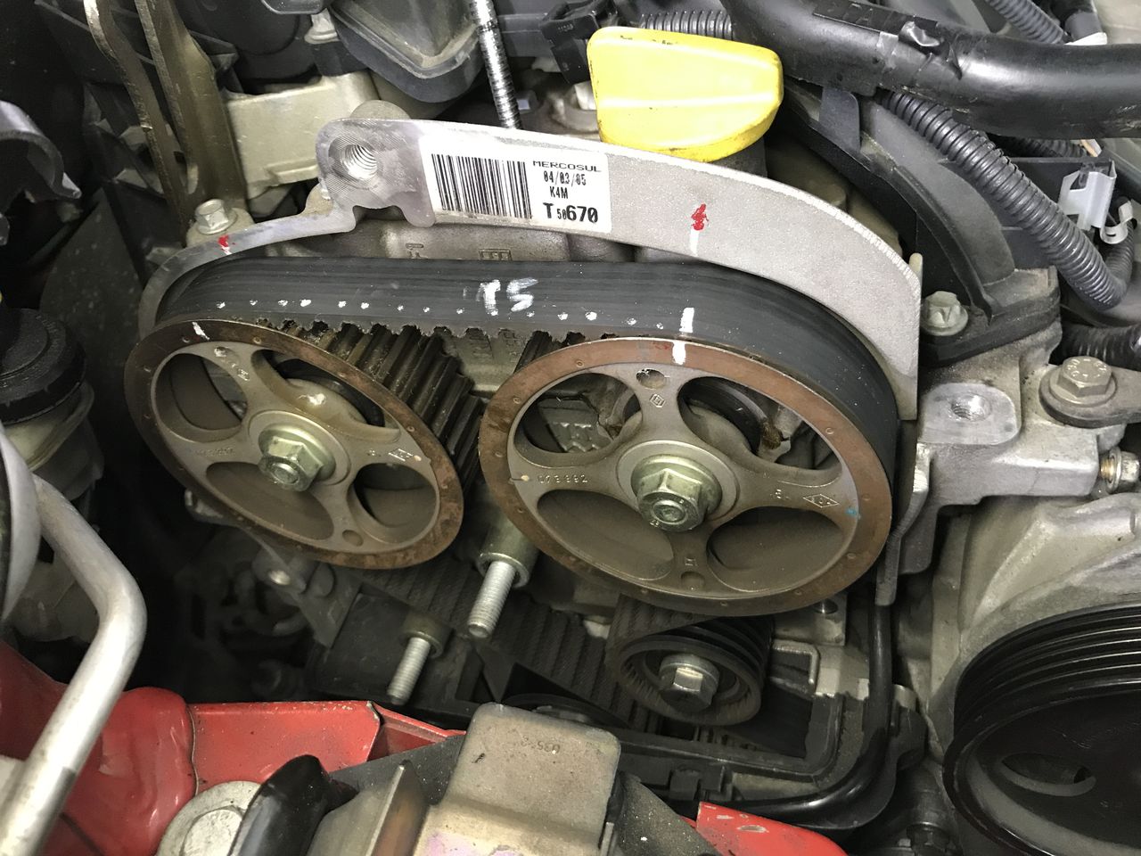 と言う手順なんですが、 カングーのタイベルカバーはエンジンマウントの取り付け台も兼ねていて、外した時に妙な手応えがあったんです。。