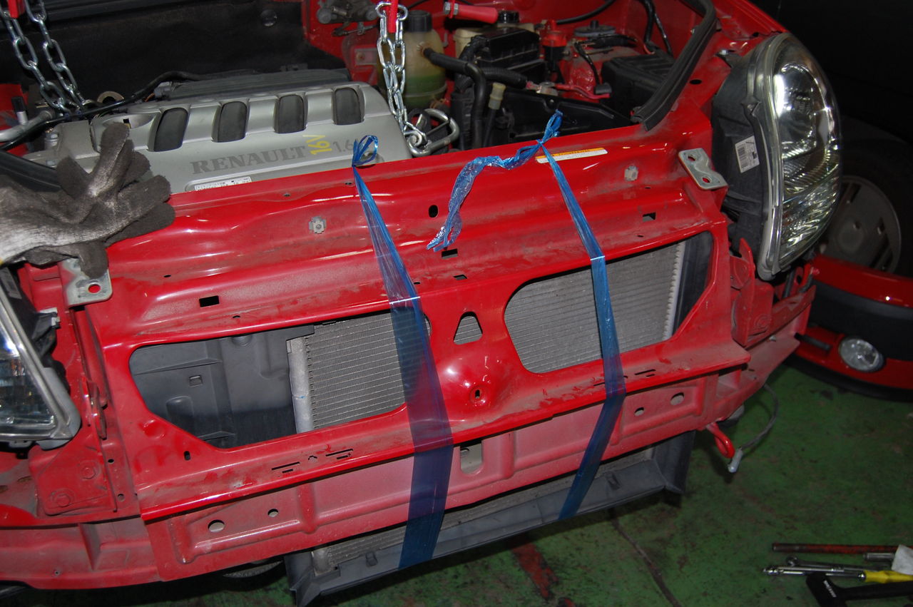 ちなみに、ミッションケースを外すだけであれば、エンジンを単に吊っておくだけで良いので、こんなエンジンクレーンでなくて、ボンネットに横棒を渡してワイヤーでくくっておくだけでも良いみたいです。