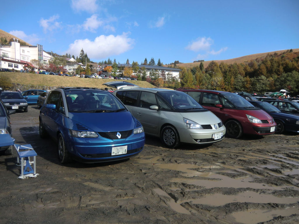 エスパスの兄弟車であるアヴァンタイムのオーナーかつ、フレンチ系ジャーナリストで有名な森口さんの提案で、「ルノーMPV軍団」(笑)で突入すれば、予約無しでメイングラウンドに駐められるかも?