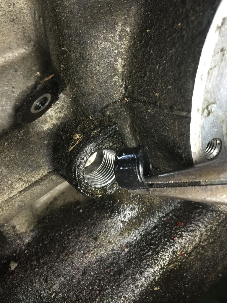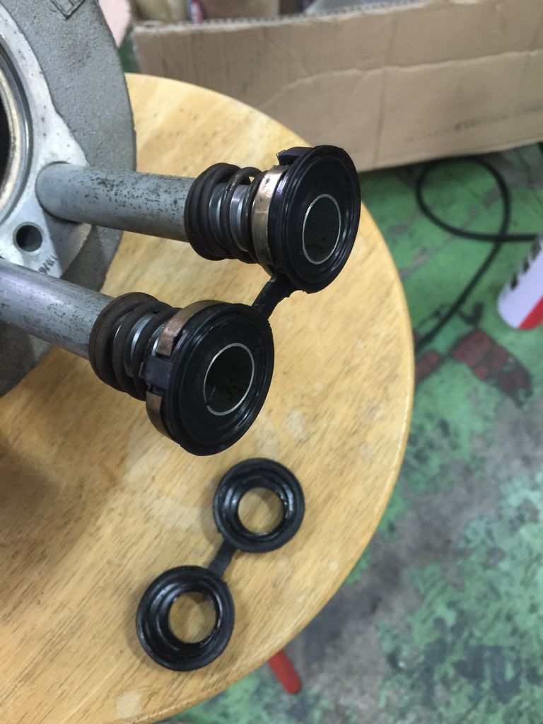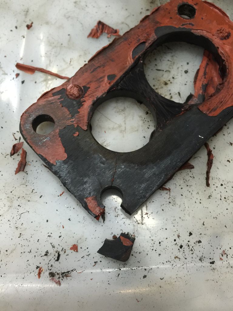 で、取り付けようとすると、、、元のスペーサーが割れていた原因でしょうね、このスペーサーも素直に入らなかったので、問題箇所の穴を広げて装着。