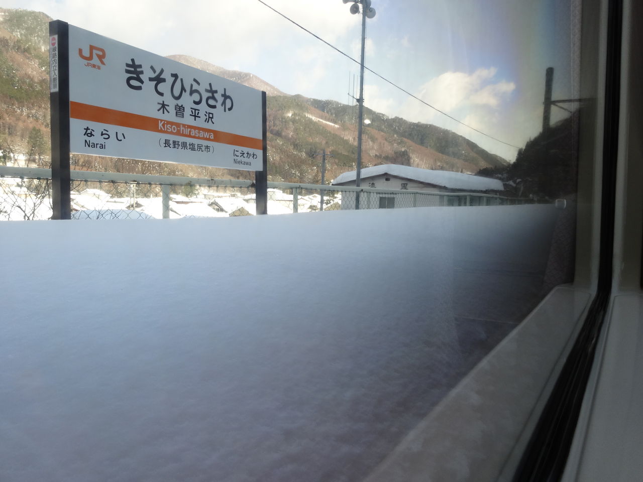 恵那山あたりを超えてからは、窓より高く積もった中を走っていくような状況で、もしここで止まったら、、、と思うとぞっとするほど。